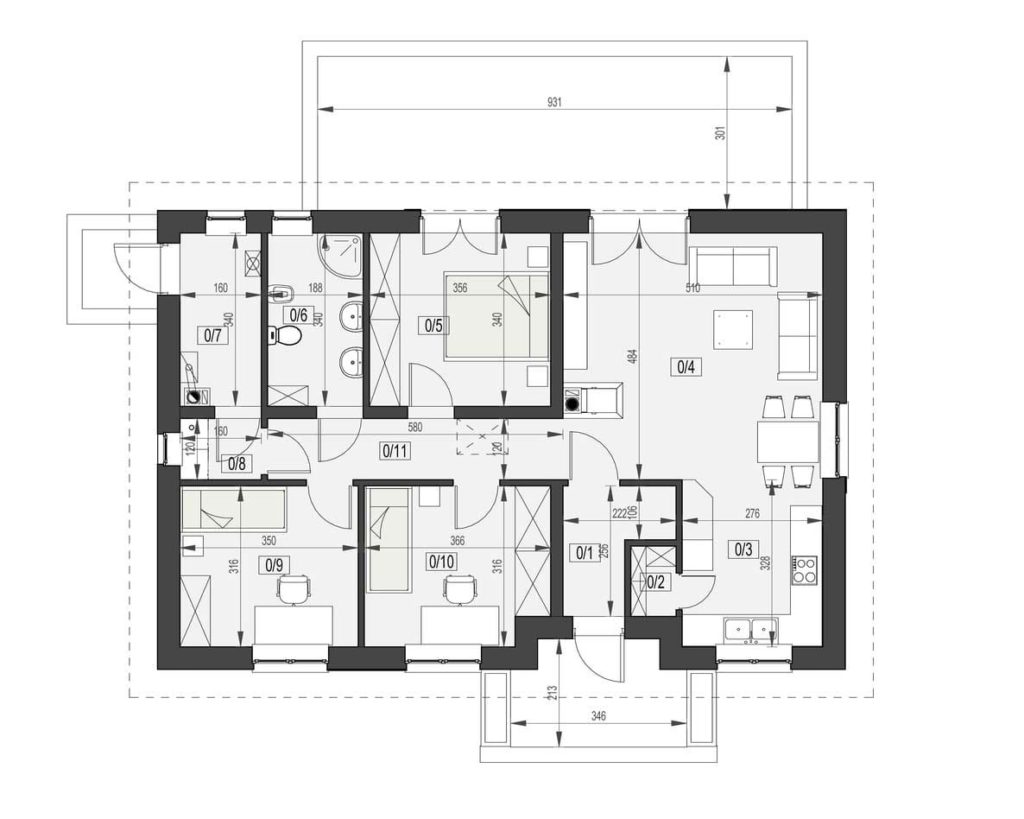 Dom KP101 jest pod każdym względem funkcjonalny i uporządkowany, a dzięki swojej prostej bryle jest tani w budowie.