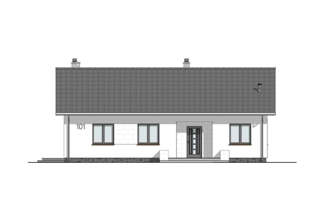 Dom KP-101 jest kolejną wersją projektu KP-100. Jest to budynek parterowy, ale z dachem dwuspadowym przeznaczonym do zabudowy wolnostojącej.