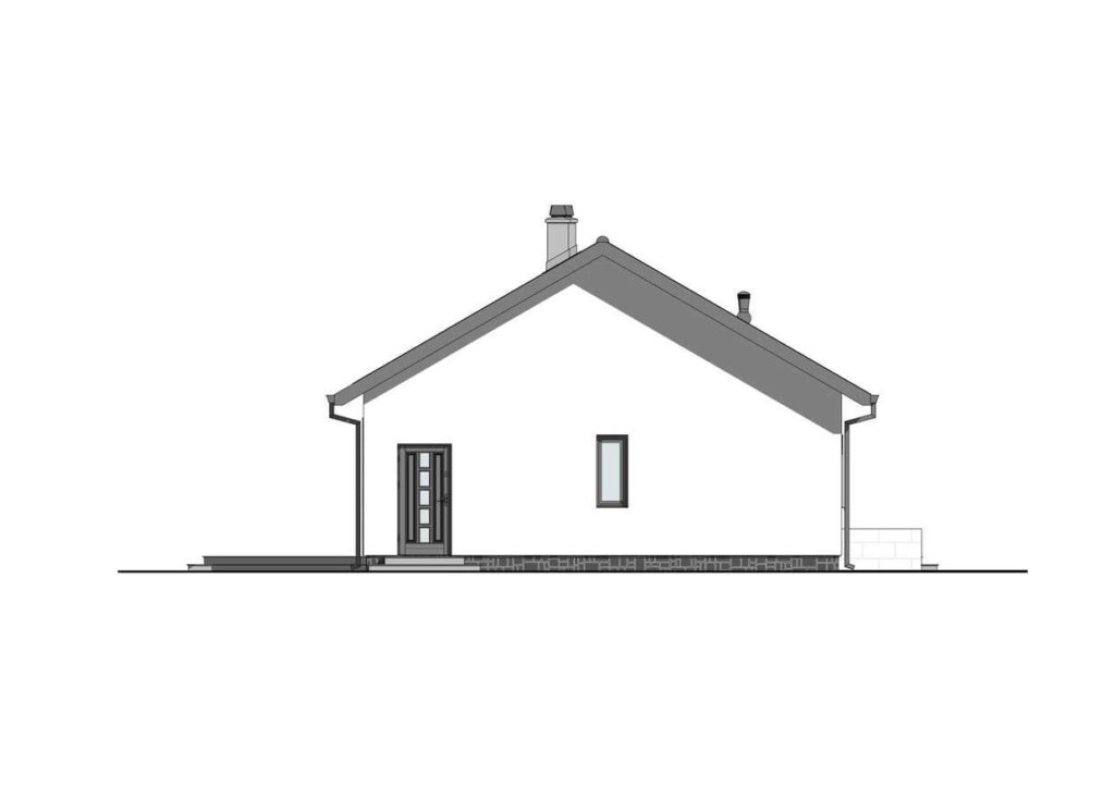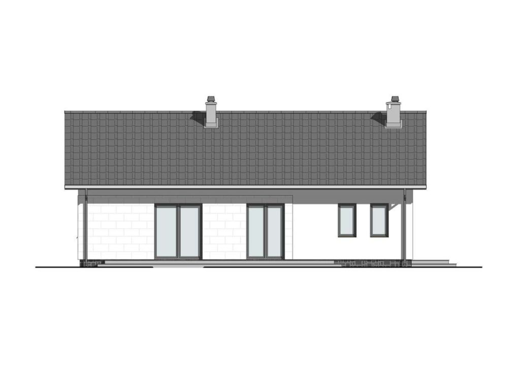 Dom KP-101 jest kolejną wersją projektu KP-100. Jest to budynek parterowy, ale z dachem dwuspadowym przeznaczonym do zabudowy wolnostojącej.  Budynek o powierzchni użytkowej 88,71 m2 posiada trzy sypialnie, które doskonale sprawdzą się w przypadku 4 osobowej rodziny. Przestronna część dzienna z jadalnią i otwartą kuchnią, będzie idealnym miejscem spotkań rodzinnych i ze znajomymi. Przy kuchni zaprojektowano spiżarkę, która ułatwi utrzymanie porządku. Usytuowany w salonie kominek sprawi, iż wnętrze stanie się bardziej przytulne. Dzięki temu, że dom jest parterowy komunikacja między pomieszczeniami jest bardzo przyjemna. W domu znajduje się jedna komfortowa łazienka. Ponad to przewidziano małą pralnię oraz kotłownię z dodatkowym wejściem od zewnątrz. Ciągłość pomiędzy wnętrzem domu a ogrodem łączy przestronny taras.