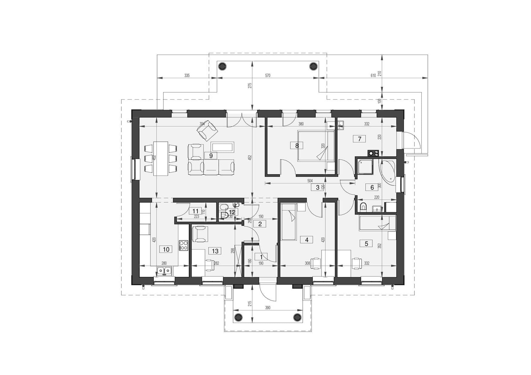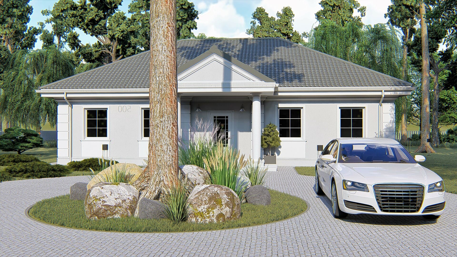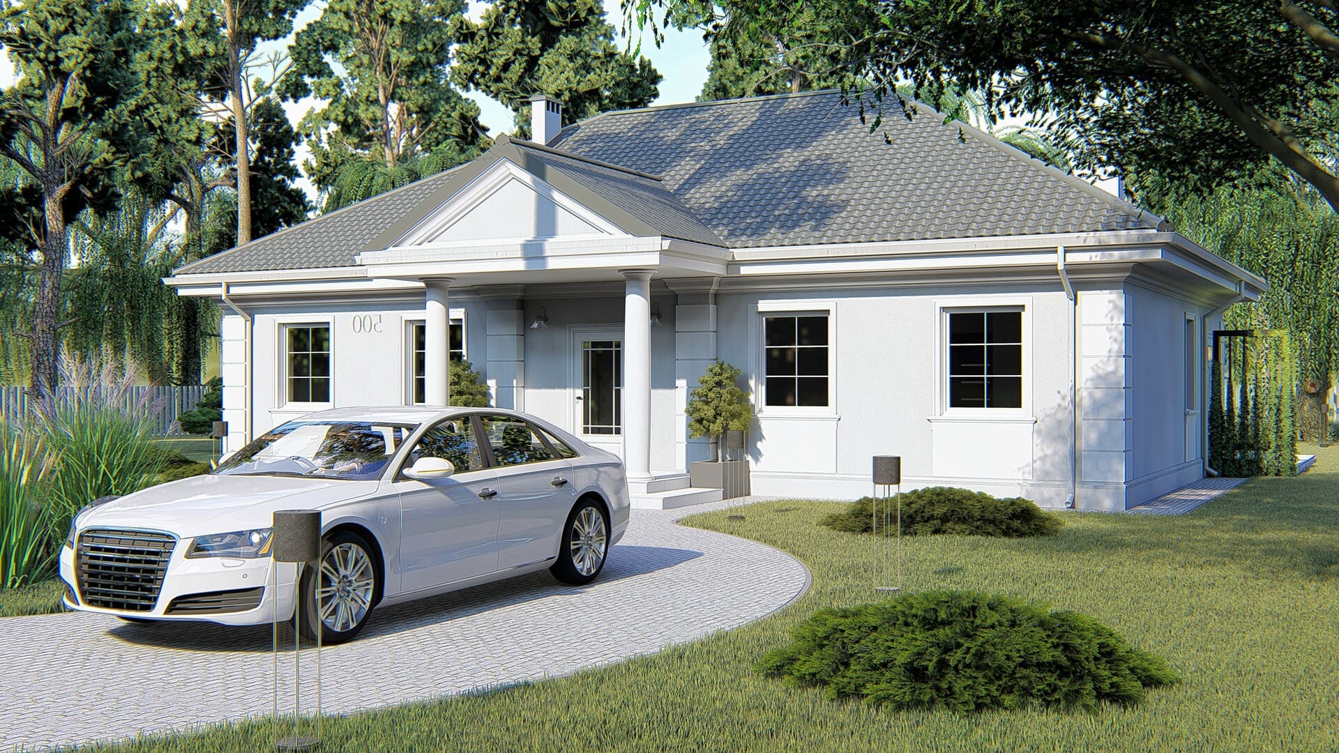 Dom KP-500 jest pod każdym względem funkcjonalny i uporządkowany, a dzięki swojej prostej bryle jest tani w budowie. Jego wygląd zewnętrzny posiada cechy stylu dworka polskiego co sprawi, że będzie doskonale prezentował się w każdym miejscu, niezależnie od okolicy.